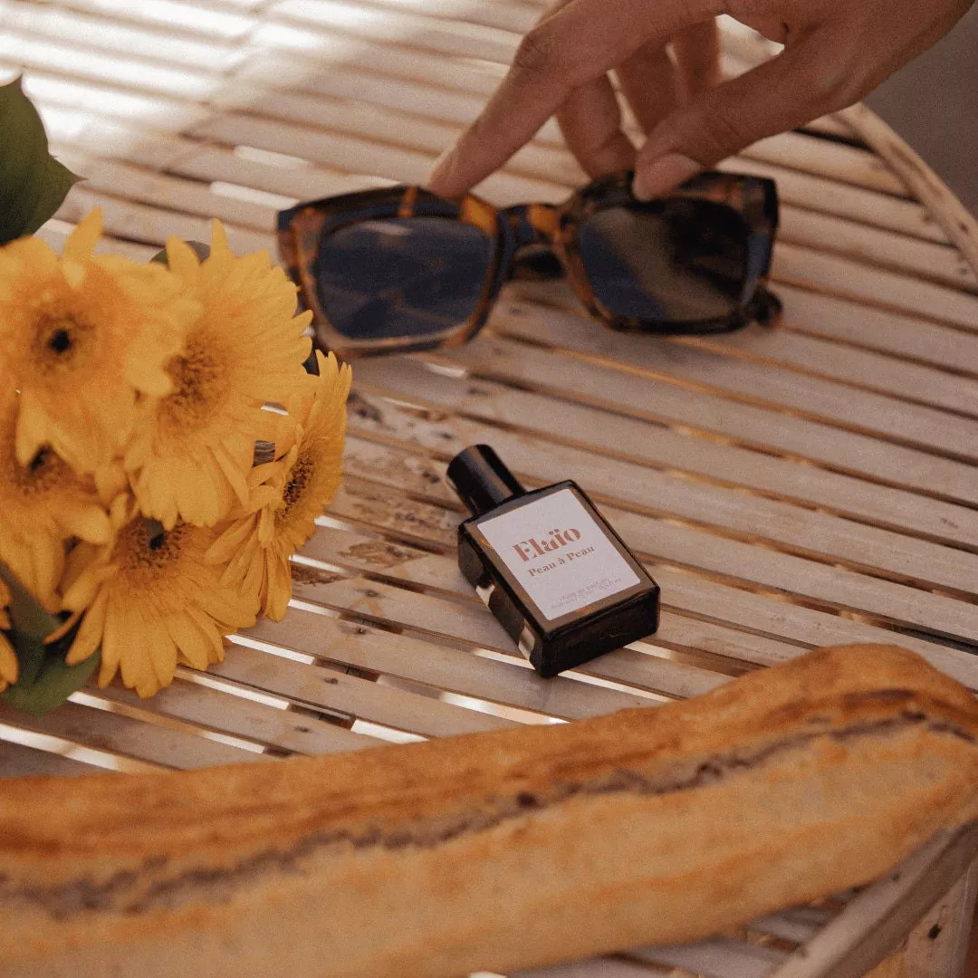 Peau à peau : coco-caprylate/caprate, parfum (fragrance), helianthus annuus (sunflower) seed oil, coconut alkanes, linalool, prunus domestica seed extract, limonene, tocopherol, geraniol, coumarin, cinnamyl alcohol, citral, benzyl benzoate, benzyl salicylate, farnesol, eugenol, isoeugenol